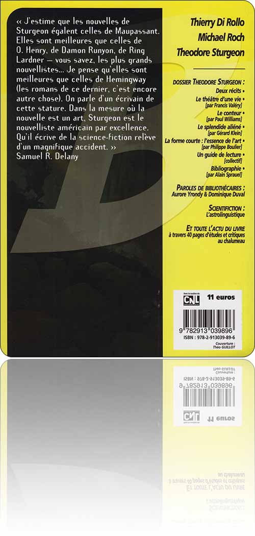 Comme toujours dans ses dossiers, Bifrost nous offre donc des regards croisés sur l'auteur. Exhaustif par les chroniqueurs qui passent en revue sa bibliographie (française), compulsif par Philippe Boulier qui dépouille les traductions françaises de ses nouvelles (dont seulement la moitié environ ont été traduites), intellectuel par Gérard Klein, vécu de près par Paul Williams, biographique par Francis Valéry — en grande forme sur cet article. On en sort avec l'envie de tout relire (ou presque). Ce qui est d'autant plus envisageable que Sturgeon, auteur aux humeurs accidentées, a finalement peu produit au long de sa carrière.