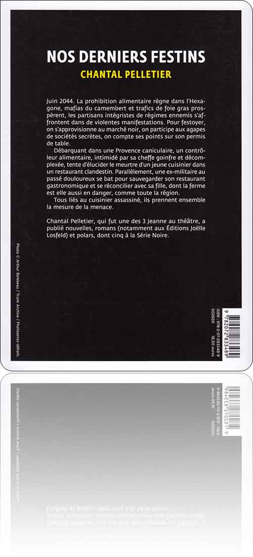 Imaginez une Provence où les températures sous abri sont de l'ordre de 42° et plus, où l'agro-alimentaire et l'élevage industriel le disputent au bio, où les restaurants qui vous accueillent sont contraints avant de vous servir de vérifier ce que vous pouvez manger. Car on ne peut manger sans son permis de table et son bilan Sécu. Parce qu'il va de soi que si vous souffrez d'un diabète, par exemple, il est hors de question que vous preniez un plaisir malsain à dévorer du sucre, sous prétexte de Sécurité sociale. Nous sommes dans un temps où les soins relèvent de votre responsabilité : on ne soignera pas votre cancer du poumon si vous continuez à fumer. Ajoutez des manifestations très violentes opposant végans — étrange, ce mot qui à mes yeux, je ne dois pas être le seul, évoque avec majuscule de lointains extraterrestres du côté de chez Van Vogt — et défenseurs des animaux à ceux qui aiment le foie gras et le gibier… Et bien sûr, les brigades de surveillance de l'alimentaire et les gendarmes font la chasse aux trafiquants de foie gras venus de l'Est. Un petit îlot de verdure “saine” résiste — ou croit le faire — aux pressions des fabricants et marchands de tourisme de luxe. Et des morts se succèdent autour de Lou, une bien sympathique “bonne femme” revenue de prison, d'Afghanistan et de bien d'autres galères. Un jeune flic envoyé en Provence et ne supportant ni sa cheffe ni les fruits et les légumes, va avec sa truculente et sensuelle supérieure découvrir bien des choses sur les vivants et les morts avant qu'un problème de migrant-clandestin ne vienne tout régler.